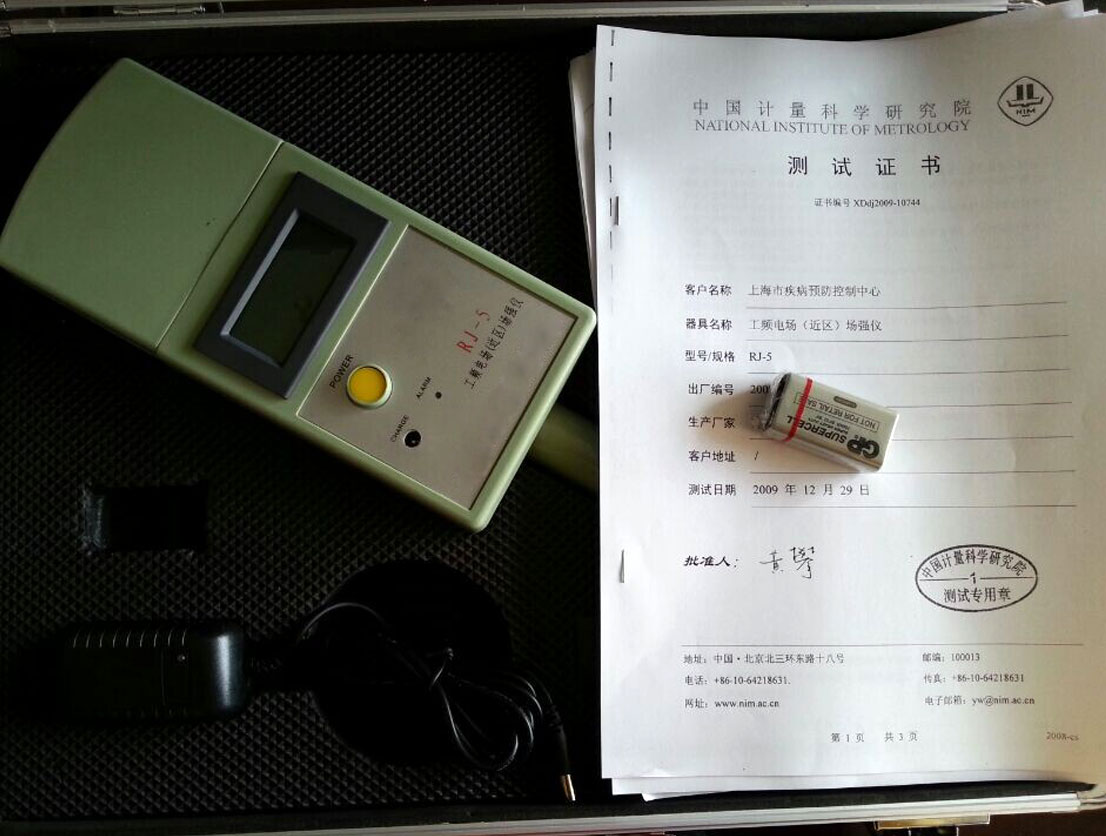 RJ-5工频电磁场(近区)场强仪,主要用于测量高压输变电系统,配电室,感应炉,地铁,电动机车,医疗设备,烘干设备,计算机等具有电磁辐射的作业场所,的电场强度。RJ-5 工频电磁场(近区)场强仪可供劳动保护,职业病防治,环境检测保护,环境卫生等工作。