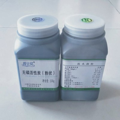 无磷活性炭/脱磷活性炭是我单位经过特殊加工生产的土壤化验脱色的必备产品,严格按照行业标准, NY/T1848-2010相关规定执行,采用高级工艺精心洗脱而成,产品呈粉状,细度为200目,无臭、无味、无砂粒,脱色效果显著。达到分析纯(AR)精度,特点是无磷且脱色效果好。
