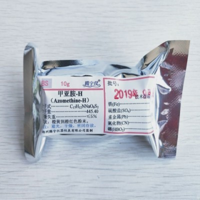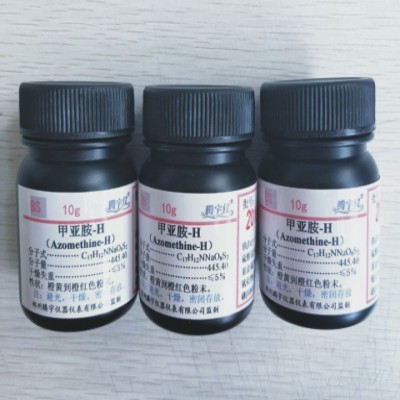产品名称:甲亚胺-H(甲亚胺,H-酸甲亚胺) 分子式:C17H12NNaO8S2性状:橙黄到橙红色粉末,无结块。容重:0.15-0.2g/cm3。用途:适用于土壤、肥料、植株、水体中硼(B)含量的测定。发货期:款到当天发货我们所采用的H-酸甲亚胺的合成工艺,合成纯度高,可满足硼等微量元素的分析要求。每瓶10g包装,内层内盖封装,外层铝箔袋封装,双层密封装,保质期更长。欢迎咨询选购,量大从优!