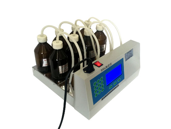 测试装置使用简单的样品稀释法,使BOD测量容易,不需远控设施。操作者只需简单的加入测量的样品和BOD营yang缓冲剂到6个BOD瓶中,将瓶子连接到微处理器控制装置的压力传感器上,从四个量程中选择一个合适的量程,BOD测试装置便可完成以后的测试。当样品温度稳定后,装置开始读出BOD值并储存在仪器的内存中,每15分钟记录一次,可选择测试5天或10天的周期。