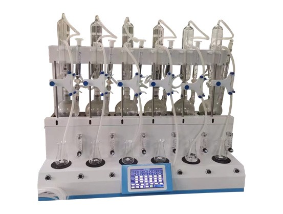 二氧化硫残留量测定仪整合加热、蒸馏、冷却循环、氮吹、磁力搅拌、接收及滴定装置等功能为一体。单次可处理1-6位样品,提高实验效率。