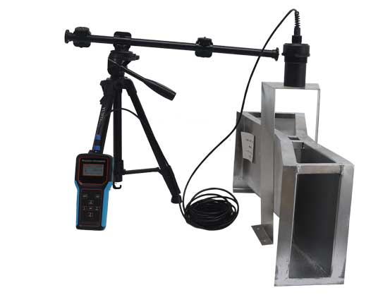 利用明渠技术,以流速-水位运算法为基础,通过测量流体液位高度,结合标准堰槽的几何尺寸、边坡系数、渠道精度、水力坡道、流速垂直平面修正系数,再经过仪器内部的微处理器运算得到流量。由于是非接触测量,明渠流量计能在较恶劣的环境中应用。明渠流量计在微机控制下,发射和接收超声波,根据传输时间计算出明渠流量计距被测液面的距离,从而得到液位高度,由于该液位与流量之间有一定的比例关系,因此可根据计算公式最终得到液体流量Q。